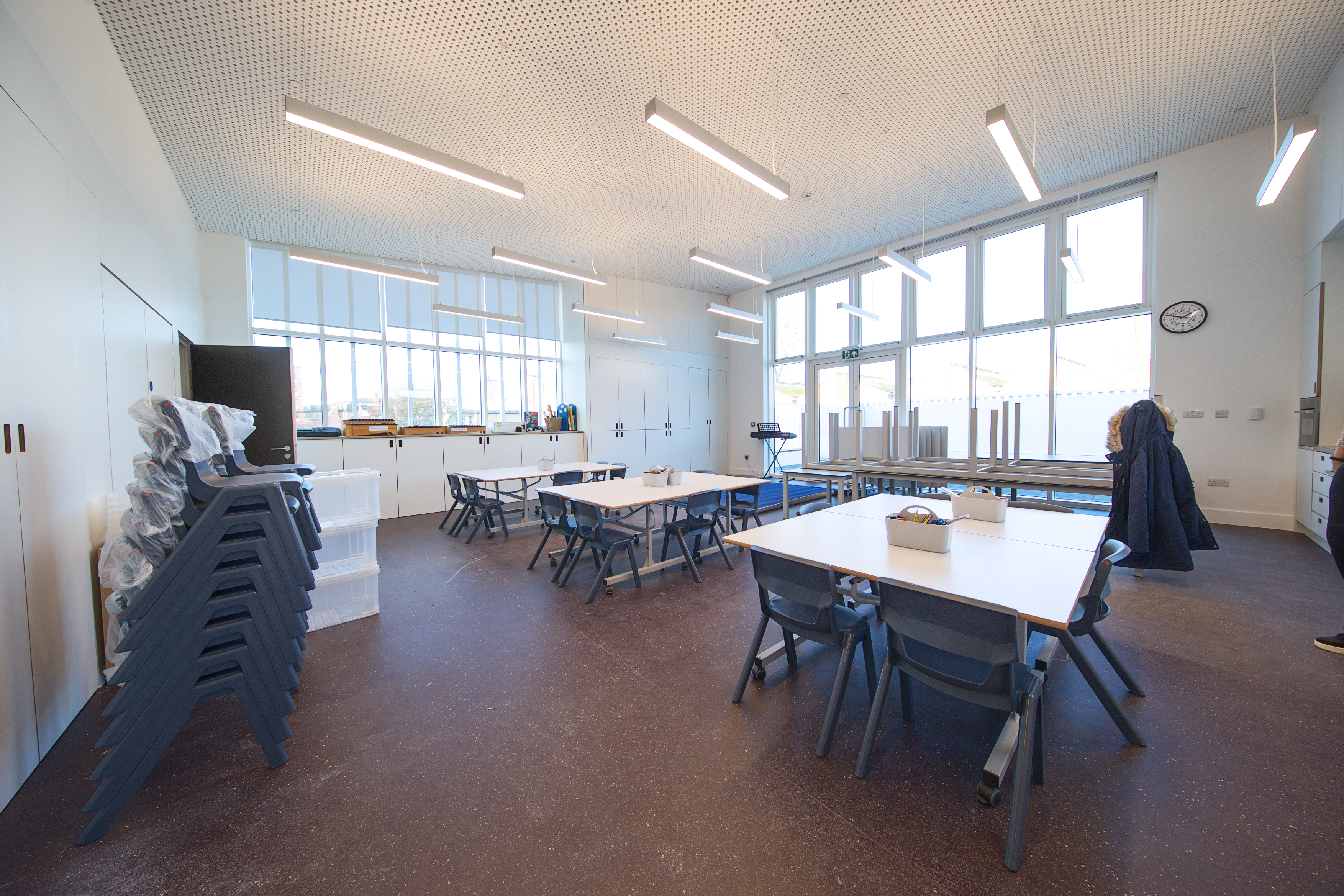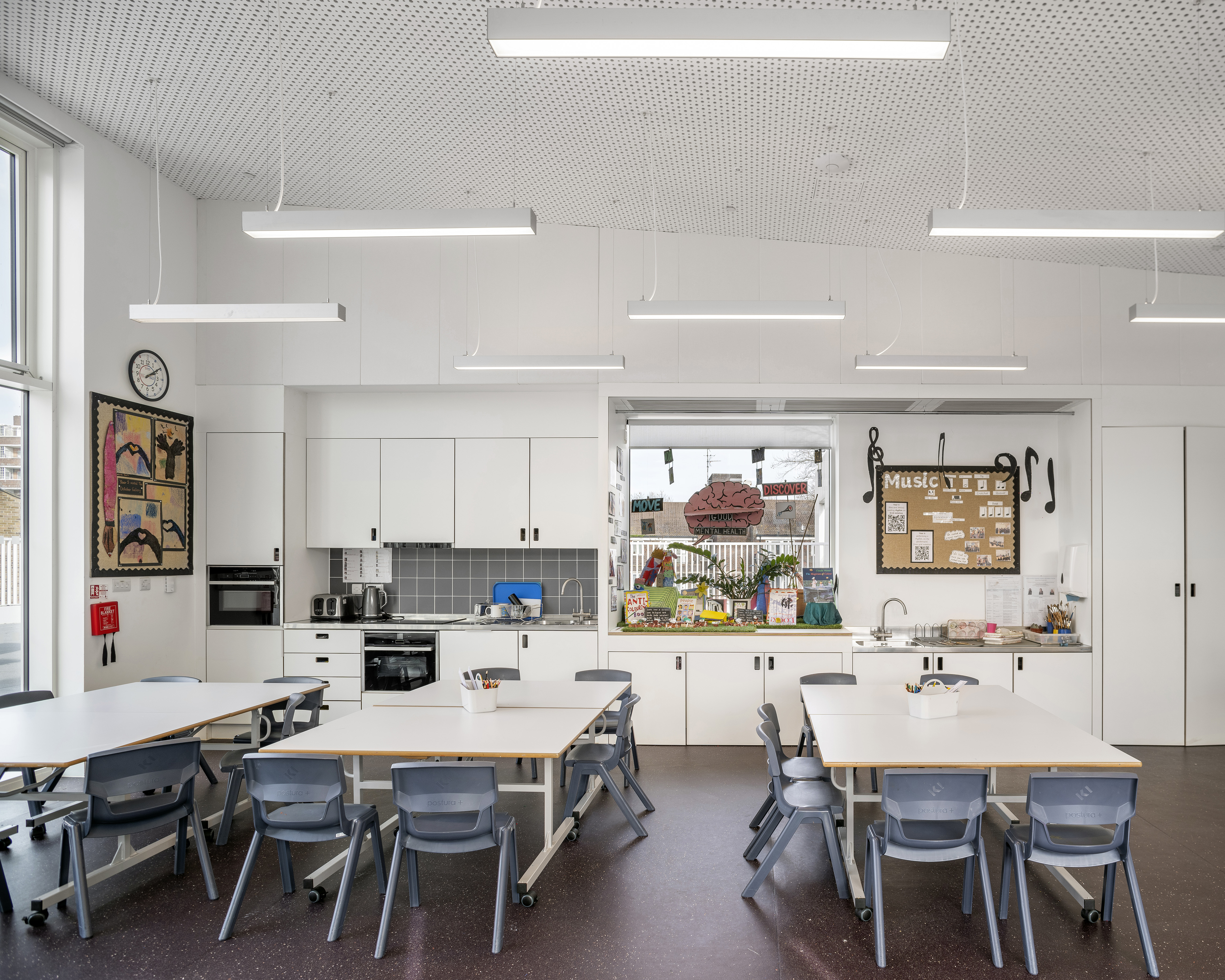 Located on the second floor of the building, the Studio is ideal for creative workshops, trainings and classes. The Studio is equipped with a smart board, 8 fold-up tables and 32 chairs, as well as a kitchenette containing an oven, tap and microwave. All furniture is child-size.